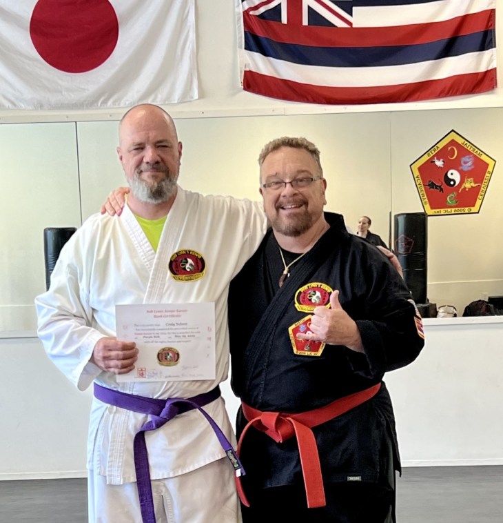 In May 2022, due to exemplary attitude and dedicated training, student Craig was promoted to purple belt. Congratulations, Craig!